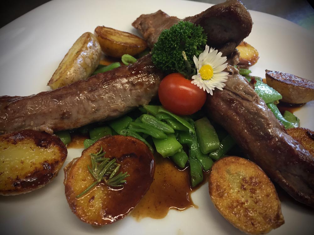 Bei uns bedeutet "Hausgemacht", dass wir aus frischen Produkten unsere Gerichte zubereiten. Dabei verzichten wir gänzlich auf deklarationspflichtige Zusatzstoffe und achten beim Einkauf auf Saisonale Produkte und vor allen auf die Qualität.